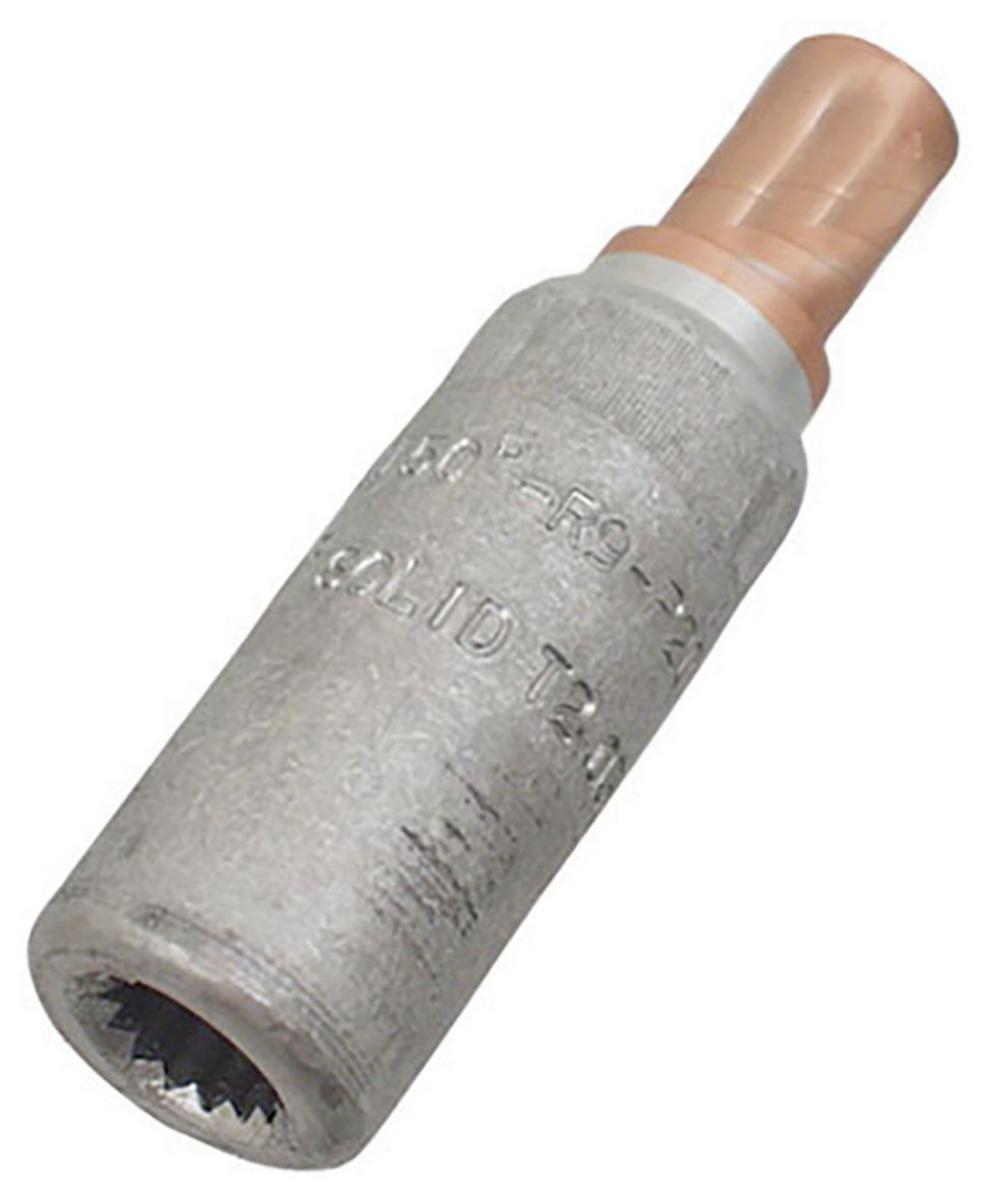 AlCu-skarvhylsa, från Al-ledare till Cu-ledare. För fåtrådig Al-kabel 240 mm² mot fåtrådig/mångtrådig Cu-kabel 70 mm². Två pressningar för Al-ledare. För pressning av Cu-ledare se instruktioner. Vid sexkantpressning av Cu-ledare placeras backarna mitt mellan märkspåret och ytterkanten. Används med Elpress rekommenderade pressverktyg V1300, V250.