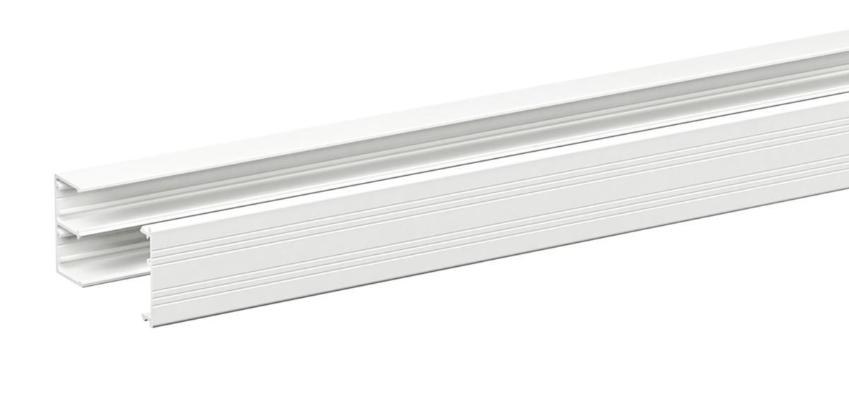 Kanalerna är indelade i två fack med fast mellanvägg. Lock och kanaldel är försedda med jordspår som även kan användas som fäste för buntband.