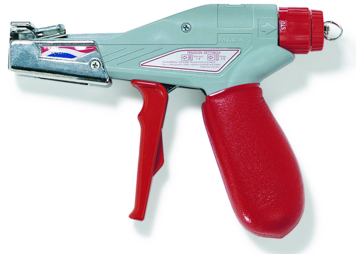 Ergonomiskt verktyg för montage av MBT stålbuntband. Åtdragning och kapning sker i ett moment.
