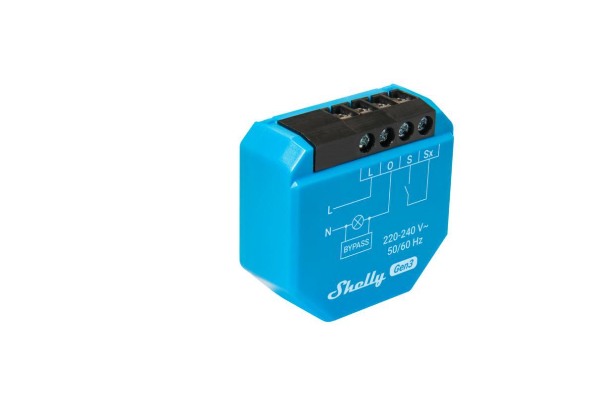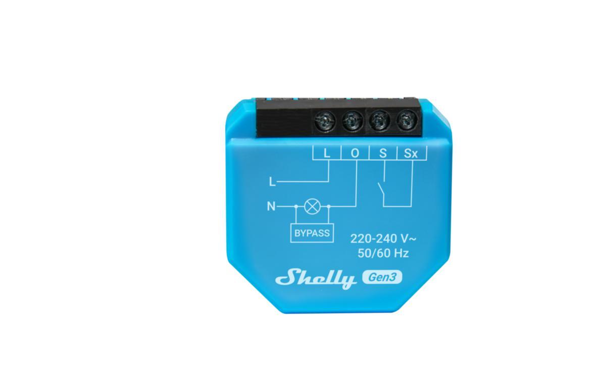 Shelly 1L Gen3 är ett WiFi-styrt 1-kanalsrelä som fungerar utan nollledare och är särskilt lämpligt för styrning av belysning där det inte finns någon nollledare bakom strömbrytaren.