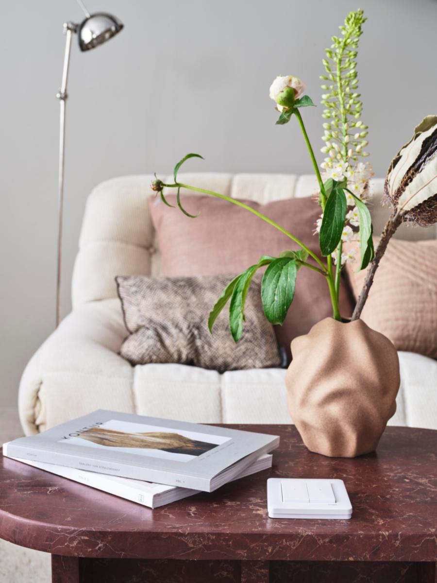 Uppkopplad jalusibrytare för styrning av jalusier/rullgardiner/persienner/lameller/markiser. Fjärrstyrning via appen eller automatisk inställning av jalusins position som svar på ett visst tillstånd eller en viss händelse. Vinkeln på lamellerna kan styras. Jalusierna kan även styras manuellt direkt på jalusibrytaren. Flera jalusibrytare kan parkopplas och då kan flera jalusier styras från en brytare eller från appen. Kräver Wiser Gateway.