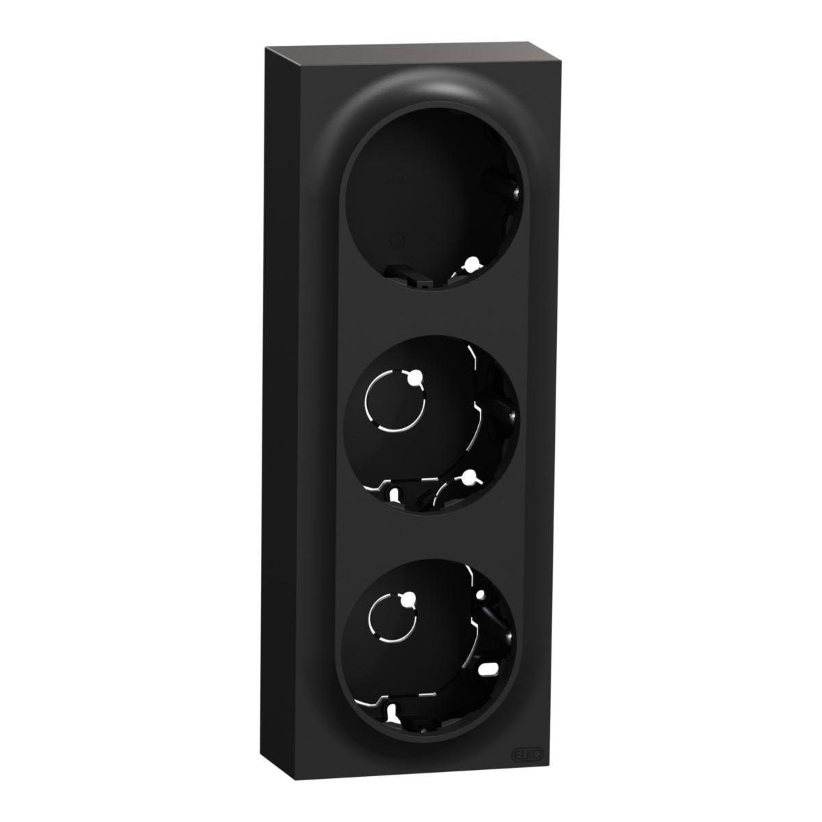Förhöjningsram, ELKO, One, plast, 3-fack, hög, för, 1-vägsuttag, dimmer, datauttag, Svart
