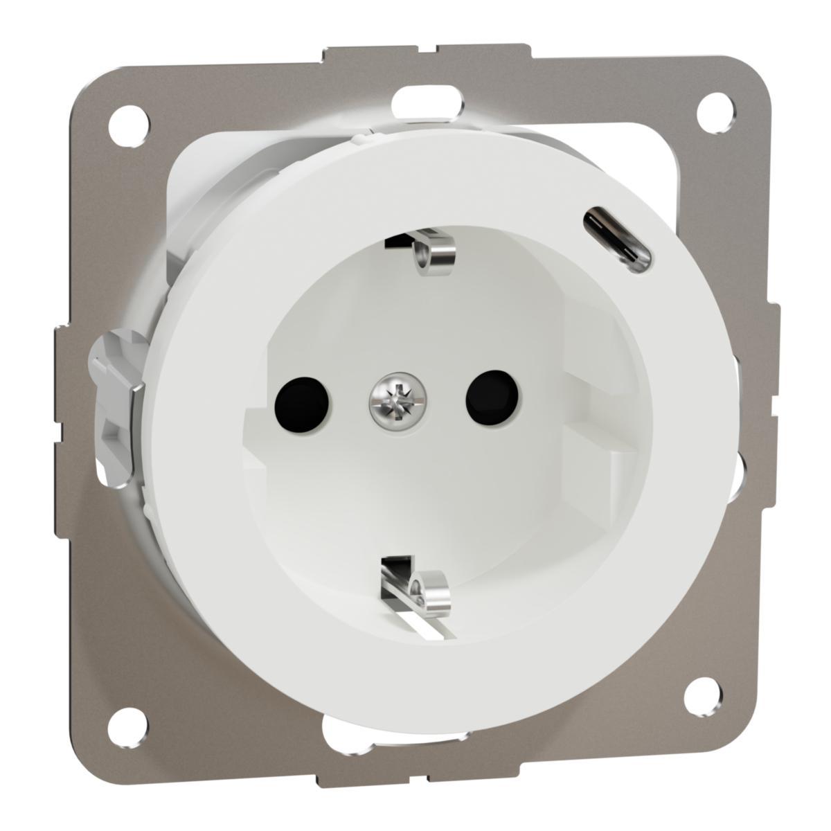 Vägguttag, ELKO, One, infälld, 1-vägs, med USB, jordat, USB typ C, PD, 20W, IP20, snabbanslutning, Renvit