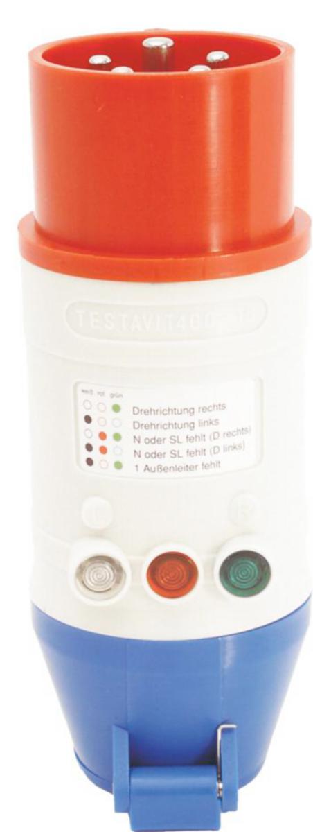 Med Testboy TV 416 erhålls en kombination av olika möjligheter. TV 416 kontrollerar fasföljden och indikerar aktuell konfiguration med hjälp av glimlampor. Samtidigt är TV 432 en adapter från ett 16A uttag till ett traditionellt schuko uttag. I kombination med Testboy Testavit Schuki 1, 2 eller 2K kan även funktionen på jordfelsbrytaren kontrolleras. Godkänd enligt EN 61010-1, TÜV/GS. Levereras med bruksanvisning.