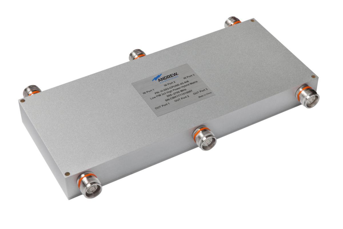 Fördelare 4,3-10 3x3 555-2700 F, Låg-PIM luftdielektrisk hybridkopplare, 340–3800 MHz