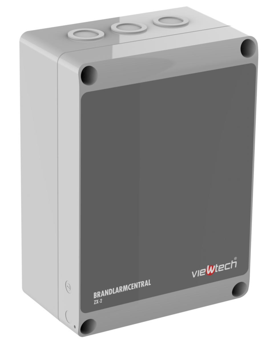 Viewtech presenterar en ny brandlarmcentral ZX-1 med en konventionell sektion. Centralen har en detektorslinga för max 15 st detektorer med övervakning och slutmotstånd. Centralen har två larmdonsutgångar med fast eller pulserande spänning. Centralen har även in- och utgångar för branddörrstängning. Centralen kan styra en eller två dörrar med tidsfördröjning för dubbeldörrar. Dörrarna kan även stängas via branddörr-stängningsknapp eller fjärrstyrt från annan anläggning typ annan brandlarmcentral. Larmrelä och felrelä med varsina potentialfria växlingar. Plats för batteribackup i kapslingen. Två st 12V 0,8 Ah. Aggregatet är skyddat mot överbelastning och kortslutning. Inbyggt skydd mot djupurladdning av batterierna. Indikeringar och larm DRIFT: Indikeras med grön lysdiod. FEL: Indikeras med gul lysdiod. BRANDLARM: Indikeras med röd lysdiod. Växlande potentialfritt larmrelä (1A 24V). Beskrivning När en rökdetektor eller värmedetektor går i larm tänds den röda larmlampan på brandlarm-centralen, larmonsutgångarna aktiveras och branddörrarna stängs och larmreläet växlar. Dörrutgång D0 stänger direkt och dörrutgång DF stänger efter ca 5 sekunder. Vid brand kan larmdon med fast signal och larmdon med pulserande 0,8/0,8 sek signal anslutas. Brandlarm återställs genom att trycka in knappen Återställning. Test görs genom att trycka in knappen fel/test. Passande detektorer är rökdetektor SM-RD, värmedetektor SM-V60M och tillhörande sockel SM-S24 med flera ur SM-serien. Passande larmknapp med inbyggt larmmotstånd är LK-5-RES Passande larmdon är brandlarmklocka BK-6, Sirén S-KAC-S1, blixtljus B-KAC-S5, sirén S-SM-100 med flera. Passande branddörrstängningsprodukter är dörr-hållarmagnet med ankare M-CQSU, konsol K-CQVF150, konsol K-CQVF300, tryckknapp TK-1U.