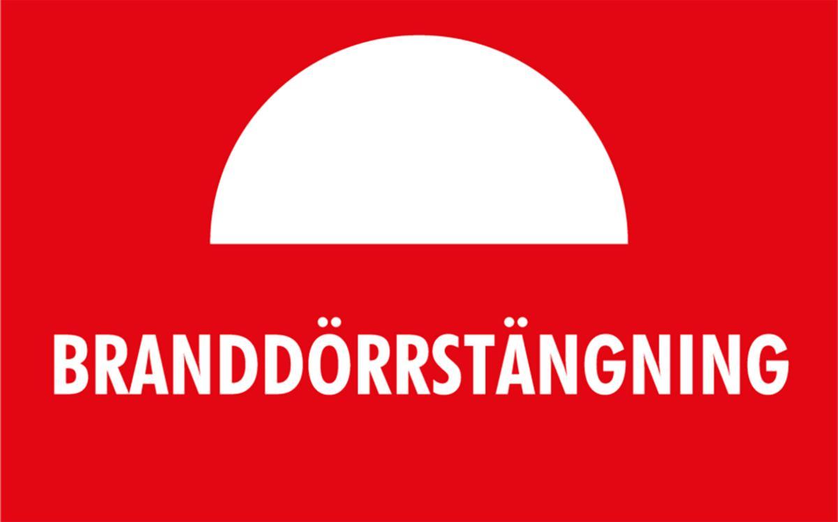 Skylt Branddörrstängning