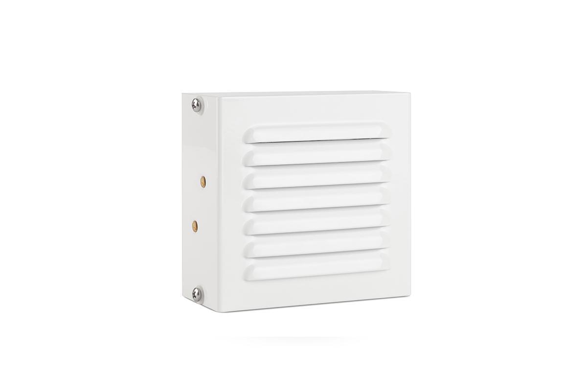 Siren utförd i kraftig vit sabotageskyddad metallkåpa med högfrekvent pulserande ton, 118db