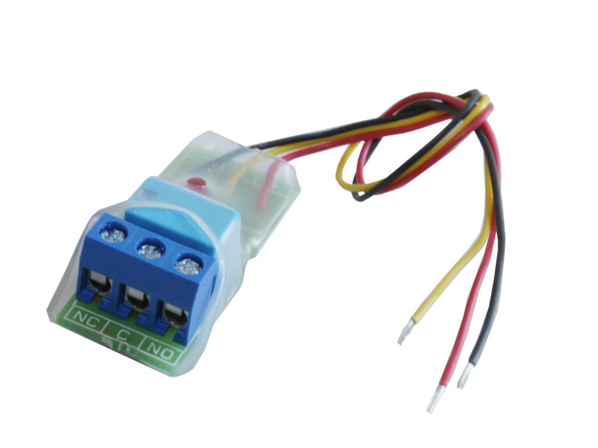 RC 1 är ett väldigt litet och universellt reläkort med växlande (NC/NO) reläfunktion. Inkoppling av reläet sker via skruvplint med trådskydd. Styrsignal och matning ansluts via 15 cm kabel. Reläet styrs via en transistor vilket gör att en mycket låg styrsignal krävs (1 mA). När reläet är aktiverat indikeras det på lysdiod.