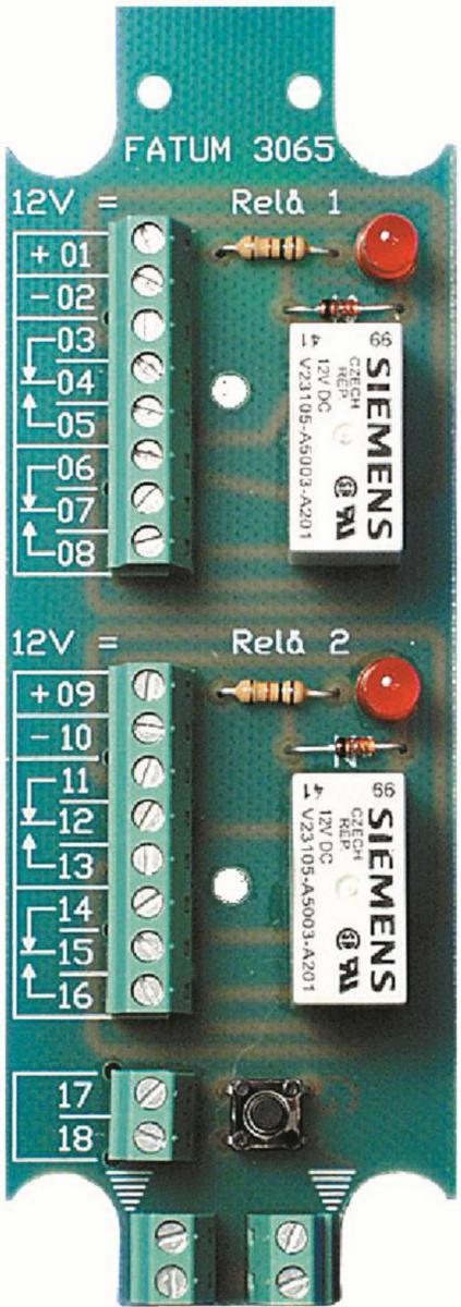 Sabotageskyddad reläplint med 2 st friliggande växlingskontakter på vardera rel. 12 VDC. Lysdiod parallellt med spole. Skyddsdiod. Separat anslutningsplint för sabotagekontakt och separat anslutningsplint för skärm. Lysdioden indikerar när relät är draget/aktivt. Max 2 A. Skruvterminal med hissfunktion för 0,14-1 mm² tråd. Separat anslutningsplint för skärm. Komplettera med signeringsplint 3131.01 (Enr 5015386) och plintdistanser 2591.12 eller 2591.15 (Enr 5015372, 5015374). Produkten finns även monterad som färdig produkt för DIN montage, se 8163.03 Enr. 5015486. Finns i olika alternativ, slits (LSA) eller skruvanslutning med hissfunktion. Flexibel ledararea gäller skruvfastsättning.