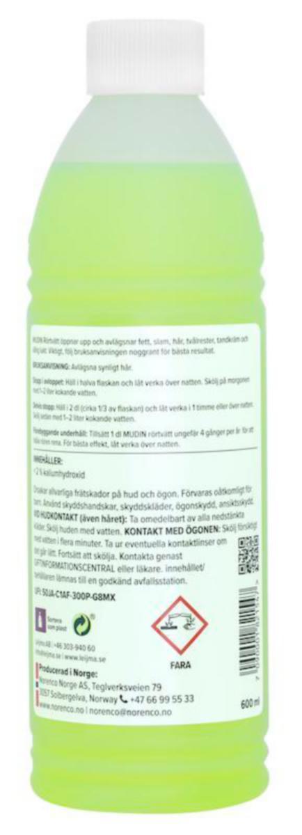 • Förebyggande underhåll: Tillsätt 1 dl MUDIN rörtvätt ungefär 4 gånger per år för att hålla rören rena. För bästa effekt, låt verka över