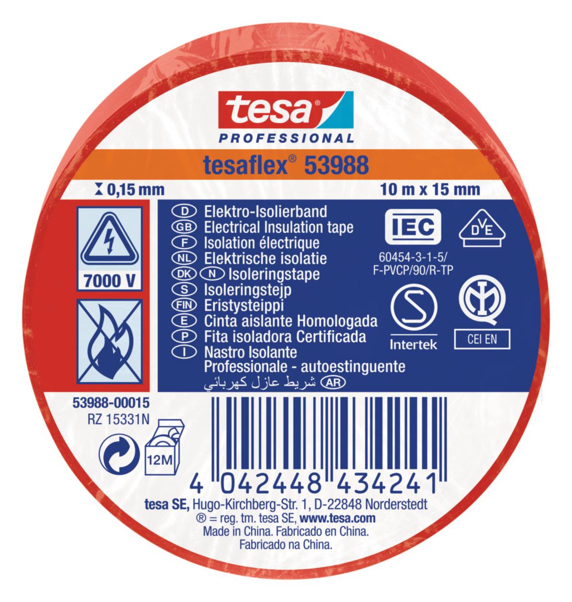 ISOLERINGSTEJP TESA 53988 RÖD 10MX15MM
