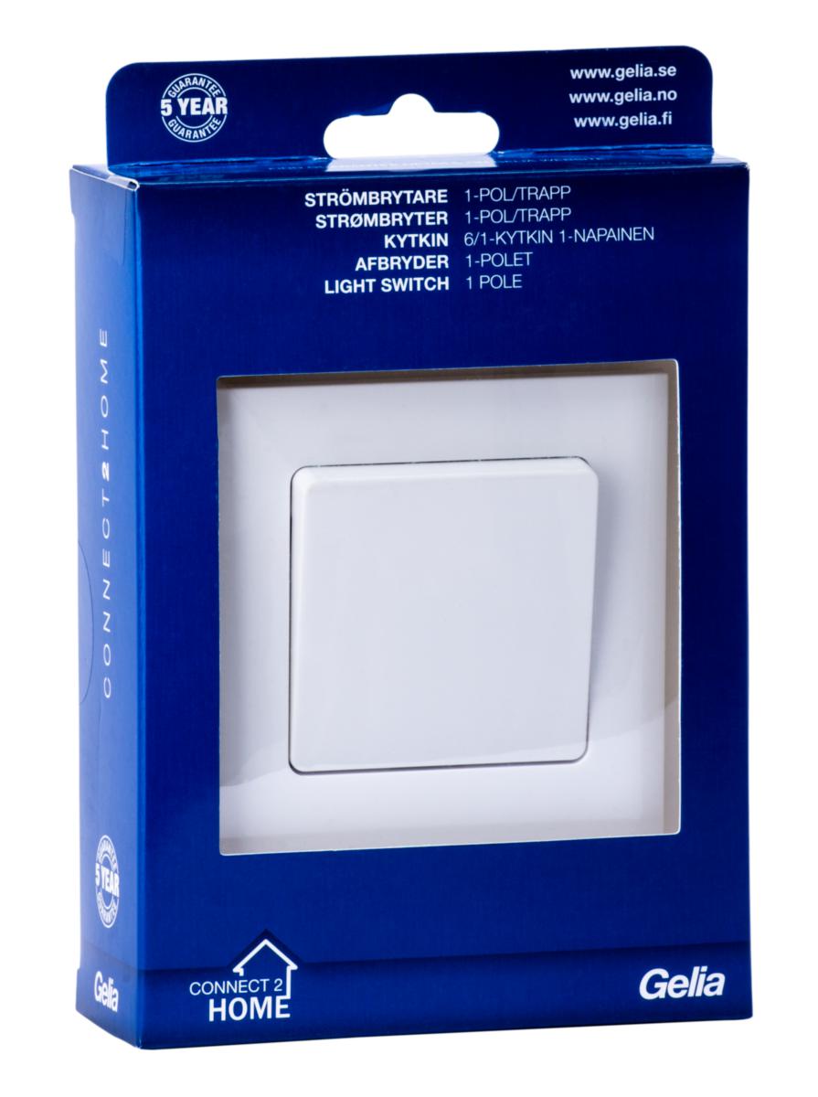 Connect 2 Home är produkter med skandinavisk design och ett modernt uttryck. I serien som Gelia har tagit fram finns strömbrytare, vägguttag och artiklar för ljusstyrning. Användarvänliga produkter som är enkla att installera. 5 års garanti.