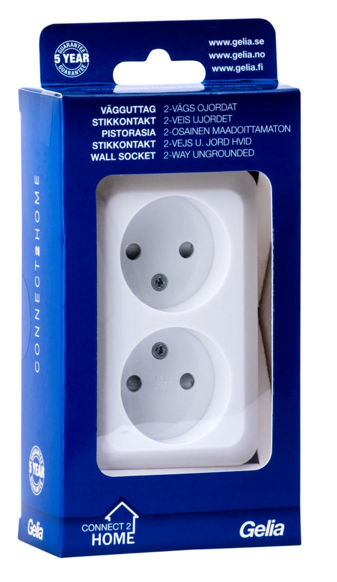 Vägguttag, utanpåliggande, ojordat, Connect 2 Home, Gelia