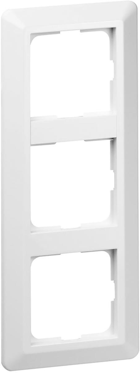 Kombinationsramar, RS, för infällda strömställare, vägguttag med mera. Materialet är halogenfri termoplast.