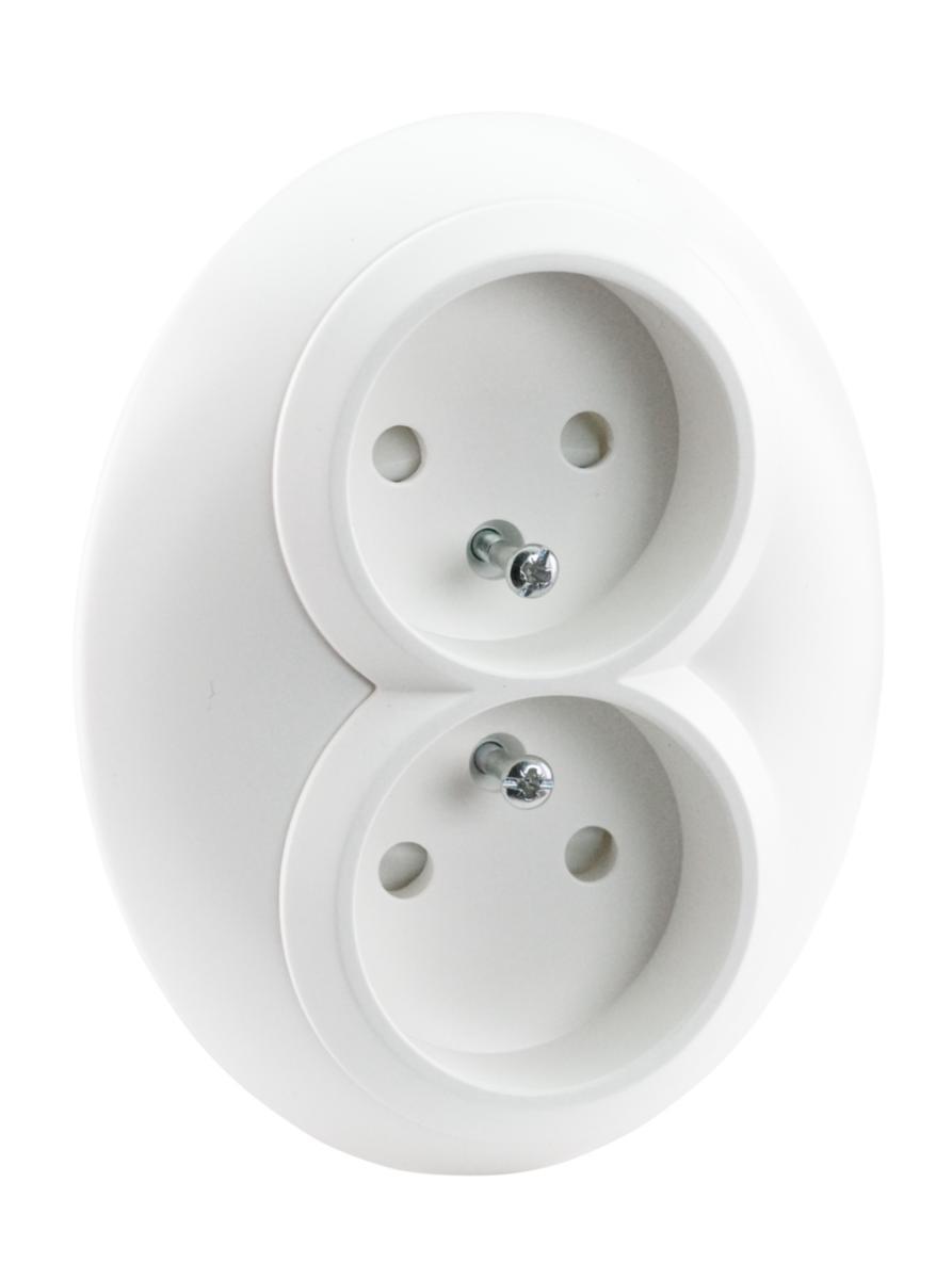 2-vägs vägguttag 16 A/230 V för infällt montage i apparatdosa. Vägguttagen har klor så att de passar i äldre apparatdosor utan skruvring. Termoplast.