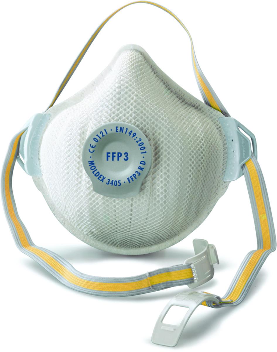 Moldex 3405-12 har en veckad filterteknologi med 260% mer filterarea. Halvmasken har extremt låg andningsmotstånd och hög filterkapacitet som ger en längre användningstid. Dessutom har den ett justerbart band med låsklämma som gör den snabb, enkel och säker att ta av och på. Ventex-ventil innebär en extra stor öppning som minskar värme och fukt, samt eliminerar imma under glasögon. Halvmasken har en tvättbar runtgående ansiktstätning och är godkänd för att användas mer än en dag. Filterklass P3. 1-pack.