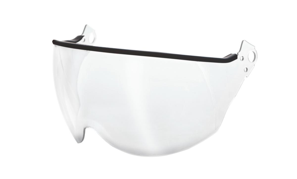 Nytt polykarbonatvisir (nu klass 1) med innovativ design med skrapbeständig lackbeläggning och inre antidimbehandling. Gummiprofilen på överkanten skyddar vid droppning och den klipptäta kanten garanterar maximal komfort. Den ergonomiska och panoramiska formen är kompatibel för överlappande korrigerande glasögon. Den höga kvalitetslinsen garanterar maximalt ögonskydd och tillåter dess fortsatta användning under hela arbetsdagen. Visiret inkluderar skruvsetet för hjälmfäste (finns även som reservdel).