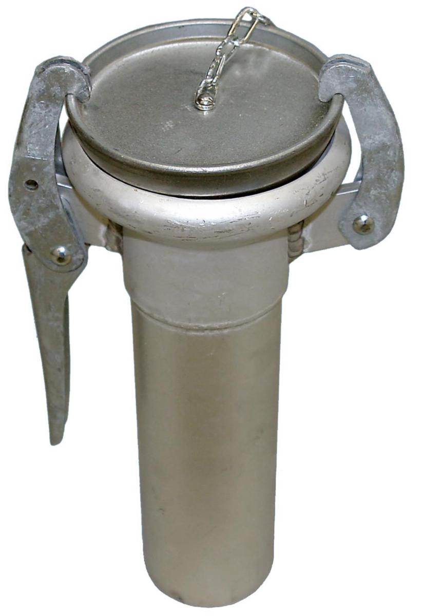 Slamsugningskoppling med lock och kedja för avloppscisterner DN 80 med förlängning passande till 75 mm PVC/PP-muff.