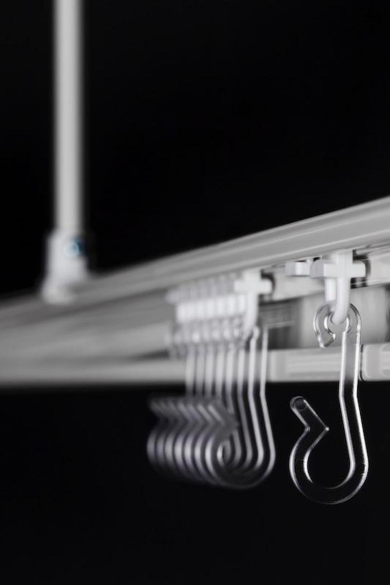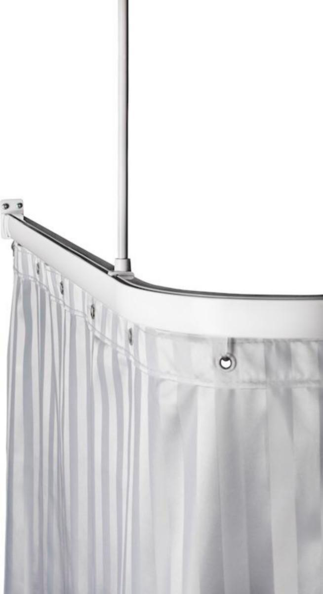 Stabil draperiskena med takfäste är tillverkad av aluminiumprofiler och är avsedd för duschutrymmen, badkar, avskiljning av rum mm. Systemet är enkelt och hållbart. Skenan monteras med medföljande fästen i vägg och i tak med pendel (50cm). Komplett inkl glid & krok. Skena och takpendel kan kapas. Tänk på att kapa mot väggfästet om det behövs.