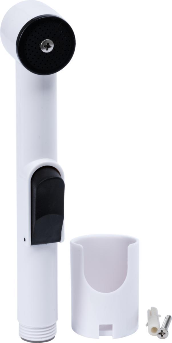 Bidéhandtag som passar som reservdel till bl a bidé- och tvättställsdusch samt kranar med bidéhandtag. Får ej utsättas för konstant tryck. Levereras med vägghållare, skruv och plugg. Dimension 1/2".