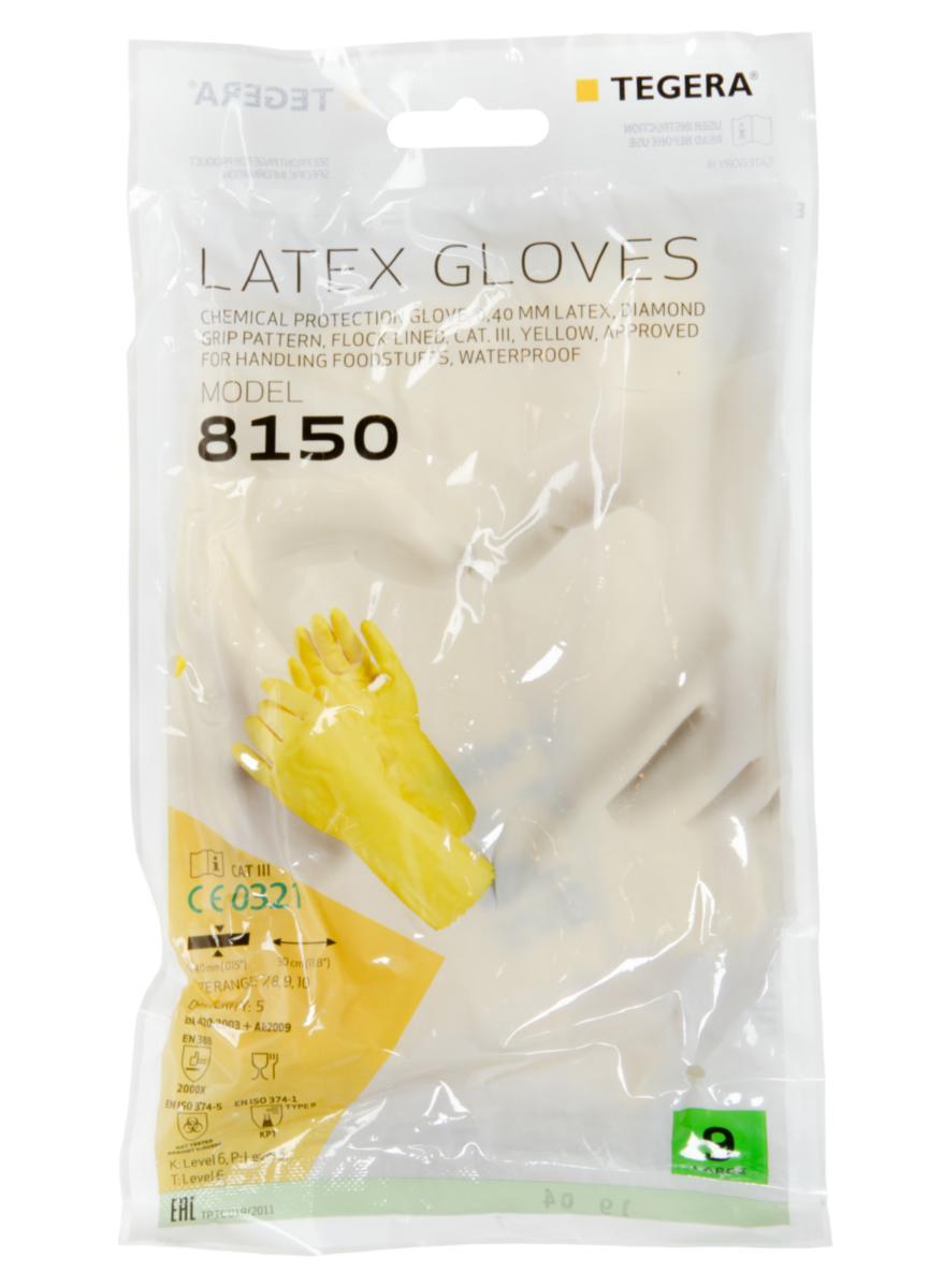 HANDSKE TEGERA 8150 LATEX GUL 30 CM 0,42MM STL 8