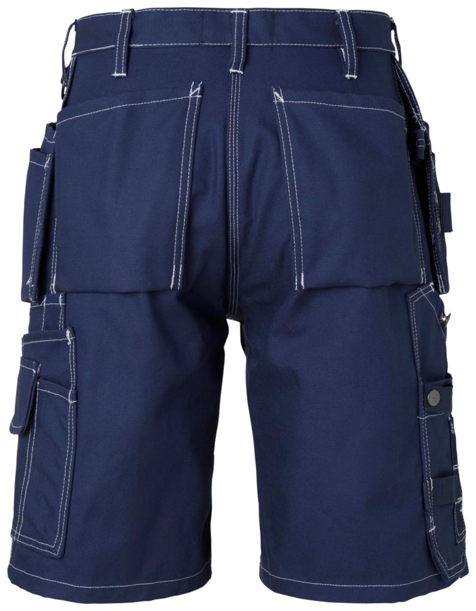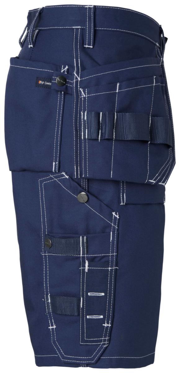 Shorts med löst hängande hantverksfickor förstärkta med CORDURA®. Vänster hängficka försedd med extra ficka. Höger hängficka försedd med tre mindre extra fickor och verktygshällor samt dold ID korts ficka som går att fälla ner. Två fasta framfickor med bälg förstärkta med CORDURA®. Två bakfickor med bälg förstärkta med CORDURA®. Hammarhank. Framflyttad tumstocksficka för bättre komfort. Tumstocksfickan är utrustad med knivhållare , knivknapp, hälla och pennficka. Benficka med telefonficka och extra fack. D-ring. Material: 100% bomull, 380g/m².