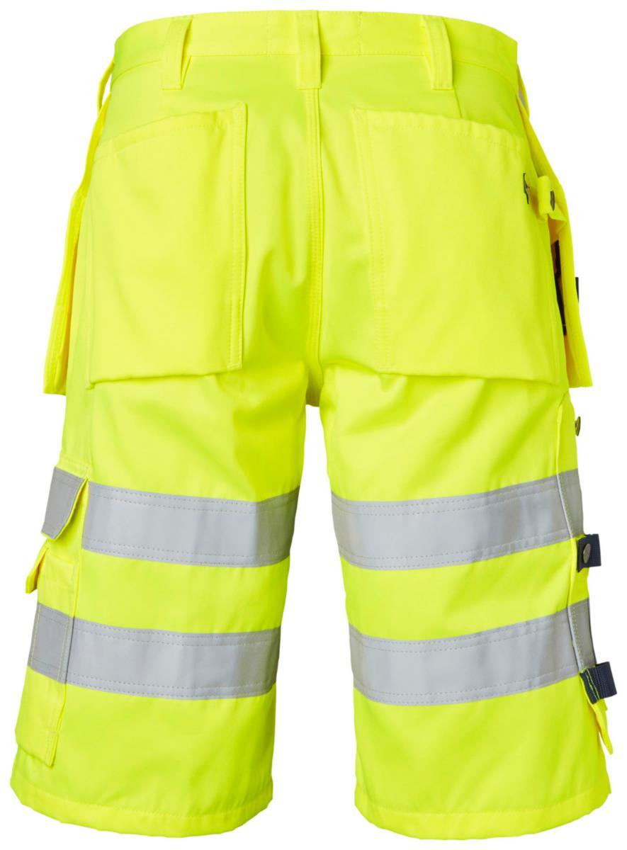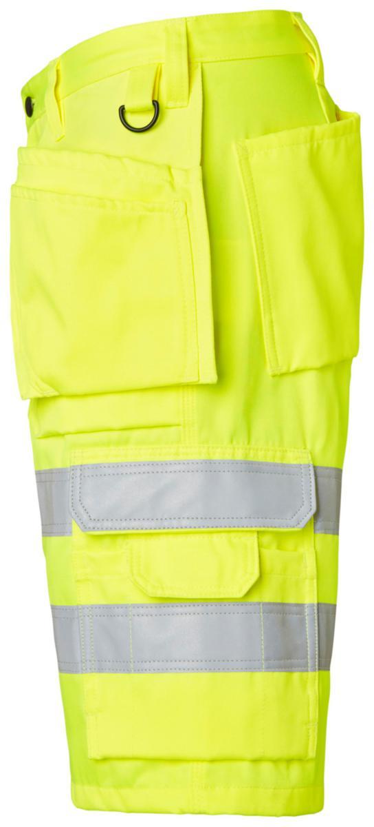 Hantverksshorts varsel. Två förstärkta framfickor. Två förstärkta bakfickor. Två Löst hängande förstärkta spikfickor. Vänster hängficka med extra ficka. Höger hängficka med tre mindre extrafickor och verktygshällor och dold id-korts ficka som går att fälla ner. Reglerbar hammarhank. D-ring. tumstocksficka som är släppt nertill för bättre komfort. Tumstocksfickan är utrustad med två knivhållare, hälla och pennfack. Benficka med lock, pennfack och telefonficka. Material: 70% Polyester, 30% Bomull, 300g/m².