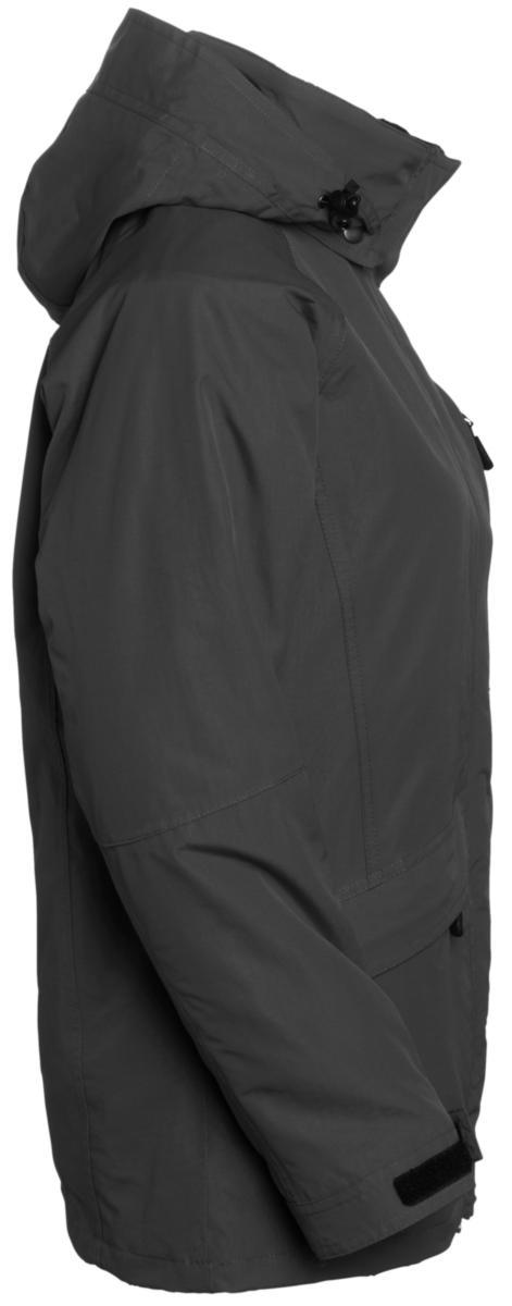 Vind- och vattentät 3-1-lagersjacka med dampassform där innerjackan är avtagbar och i fodrad microfleece. Går bra att använda var och en för sig eller tillsammans. Avtagbar huva. Bröstficka och sidfickor med dragkedja. Sömmarna är tejpade. Båda jackor har dragkedja i fodret, vilket underlättar profilering. Jackan har innerficka. Andningsförmåga 5000g/m2/24h. Material: 100% nylon.