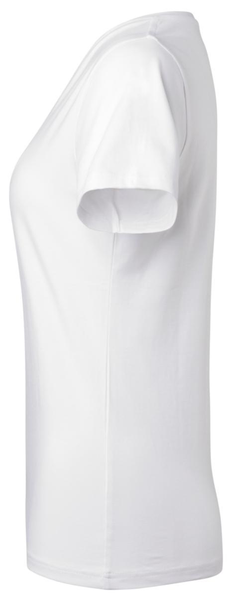 T-shirt gjord av Fairtrade-certifierad bomull med stretch för skön passform. Snygg v-ringad hals och fin dampassform. Material: 95% ekologisk bomull Fairtrade-certifierad, 5% elastan. Färg 94 är 70% ekologisk bomull Fairtrade-certifierad, 25% viskos, 5% elastan, 180 g/m².