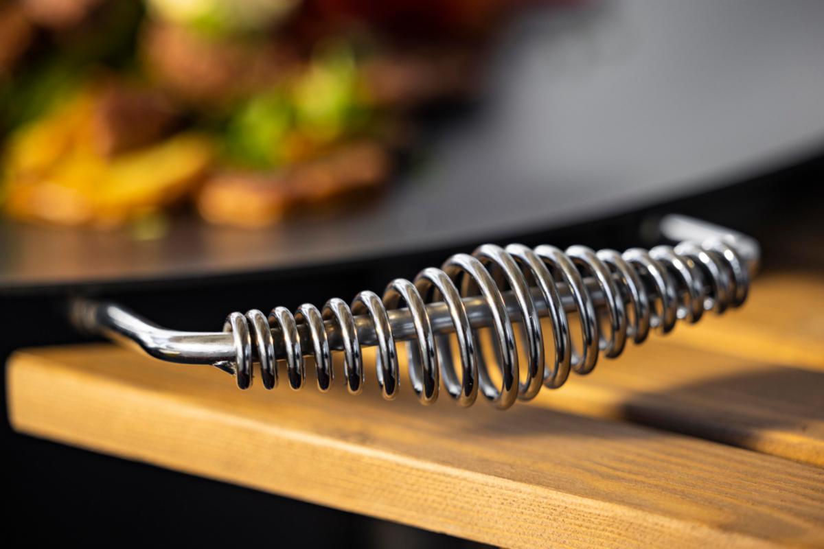 Perfekt storlek för ett lite större sällskap och för de flesta bjudningar eller utflykter där planen är att vara lite mer stationära, som hemma i trädgården, på lantstället eller lite mer vägnära ute i naturen. 78an hanterar med lätthet ett sällskap på upp till 15 personer. Hällen kan användas i kombination med medföljande gasolbrännare på stativ men också direkt över öppen eld. Hällen är tillverkad av högklassigt varmvalsat stål och levereras med emaljerad yta, färdig att laga mat på. Stilrena handtag, i kromat fjäderstål, handtagen håller sig svalare än hällen. Gasolbrännaren ger snabb värme som enkelt justeras efter behov.