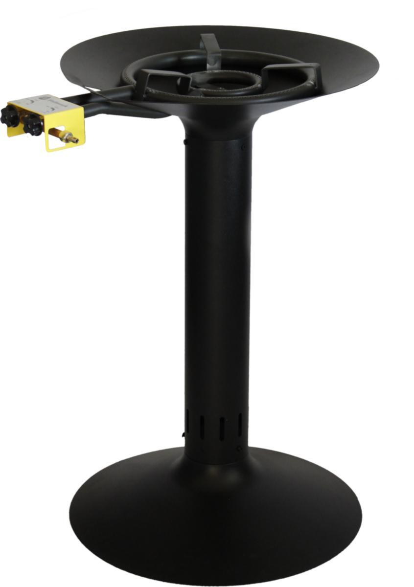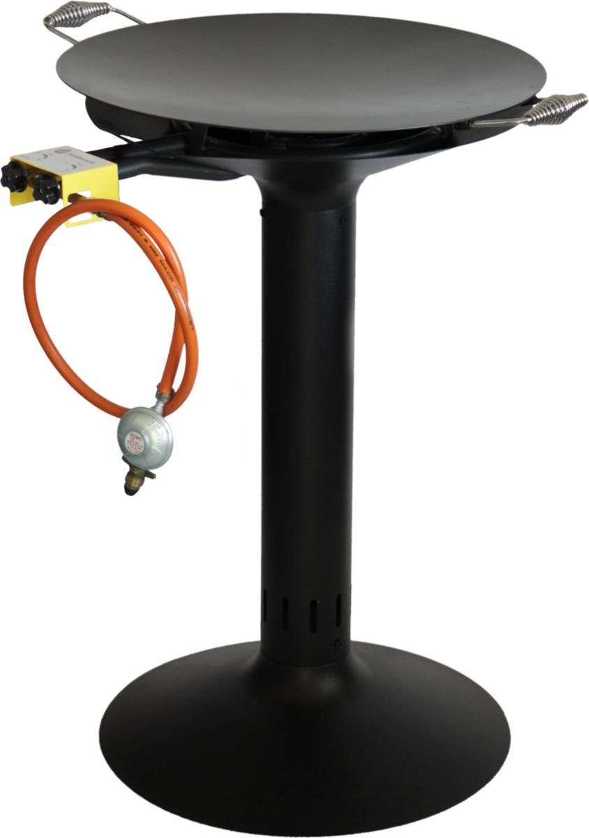 Pelarhäll för upp till 8 personer. En rejäl konstruktion med inbyggt vindskydd som står stadigt. Hällen är tillverkad av högklassigt varmvalsat stål och levereras med emaljerad yta, klar att användas. Dom stilrena handtagen i kromat fjäderstål håller sig svalare än hällen. Gasolbrännaren ger snabbt värme som enkelt justeras efter behov.