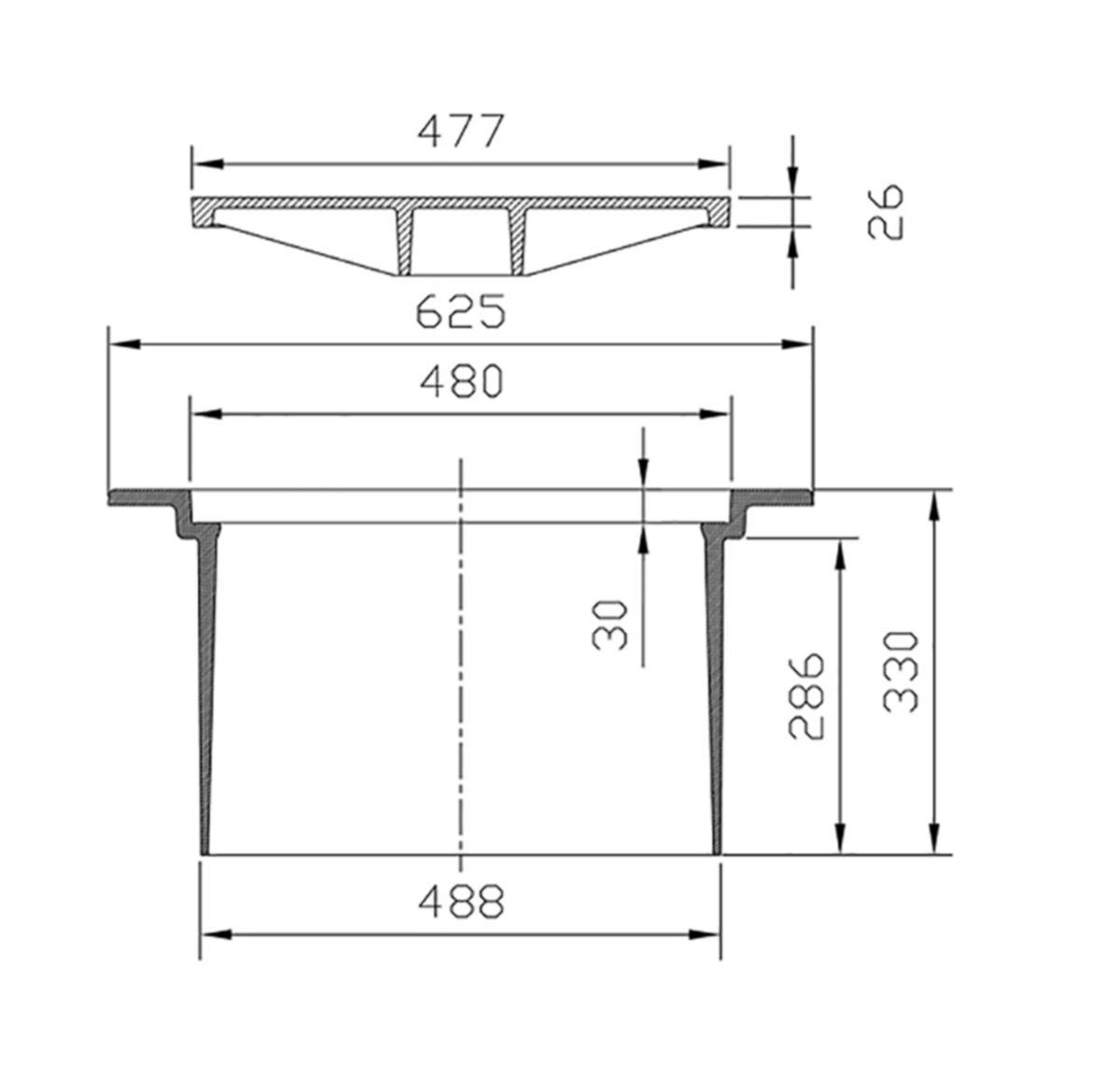 Flytande komplett betäckning för tillsynsbrunn med dagöppning 500, med spetthål, självlåsande.