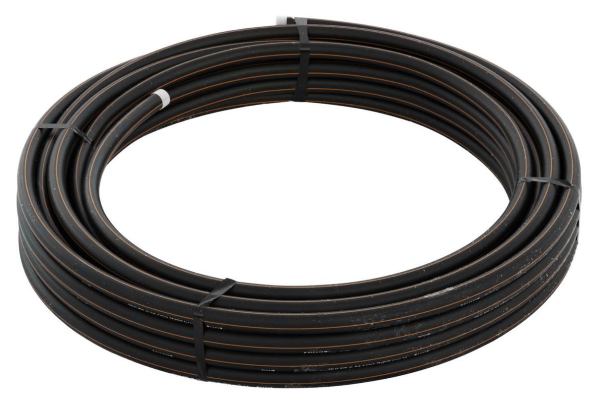 PEM-slang PE100-RC med brun stripe, proppade ändar. Levereras i obruten rulle. Nordic Poly Mark.