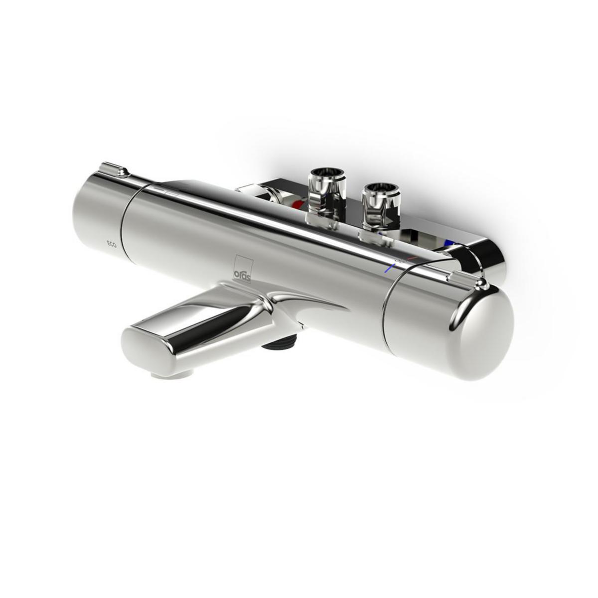 Termostatblandare för dusch och badkar med fast utloppspip. Temperaturvred med säkerhetsspärr vid 38°C. Volymvred med integrerad keramisk omkastare och kontroll för Ecoflöde. Blandaren är utrustad med backventiler och smutsfilter.
