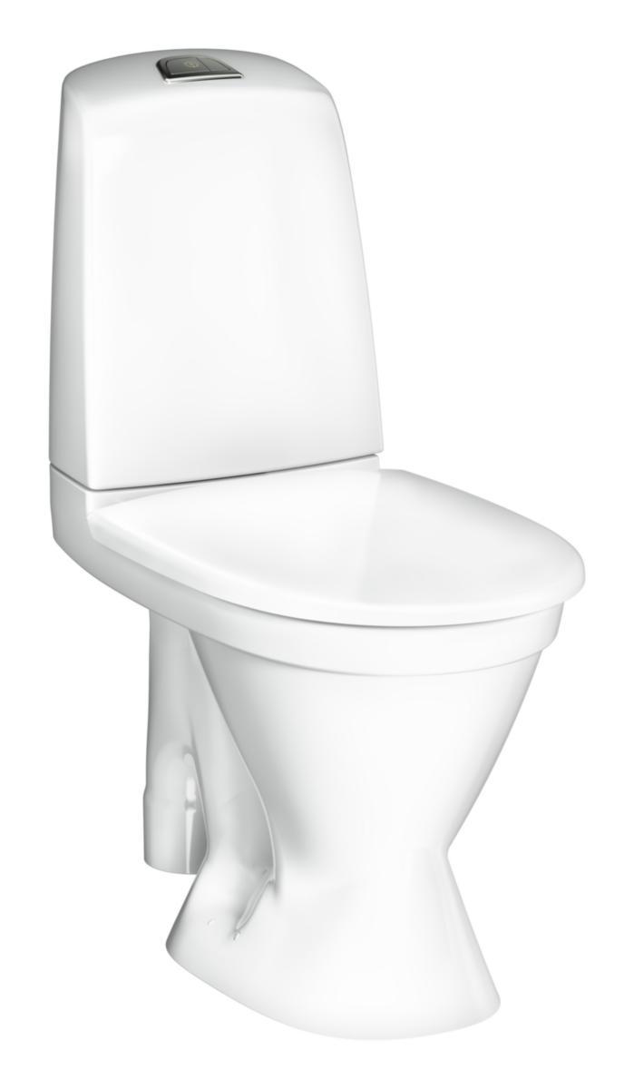 WC-stol med S-lås och golvstående konstruktion. Utförandet är tillverkat i vit keramik med en blank yta. Bredden är 345 mm, djupet 650 mm och höjden 860 mm. Spolningen sker med tryckknapp och dubbelspolning, vilket innebär två mängder: 2–4 l. Spolformen är djup och konstruktionen saknar spolkant. Vattenanslutning sker både till höger och nedåt.