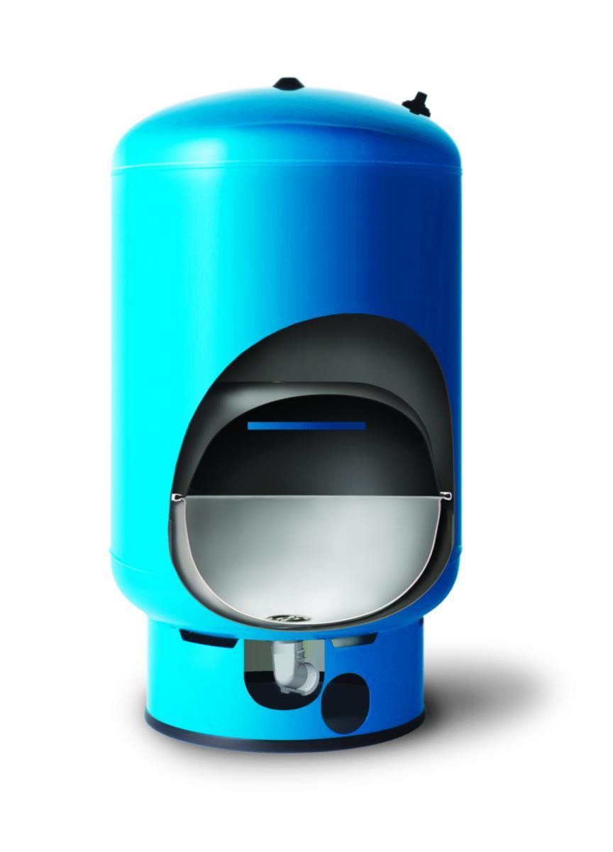 Kondensfri konstruktion som finns i en mängd storlekar och utföranden, 60 L - 450 L. Tre gånger så stor avtappningsvolym jämfört med en traditionell hydrofor. Vattnet förvaras i en skyddad miljö inuti ett livsmedelsgodkänt butylmembran. Dessa membranhydroforer är förtryckta med ca 1,4 bar och helt underhållsfria de första användningsåren.