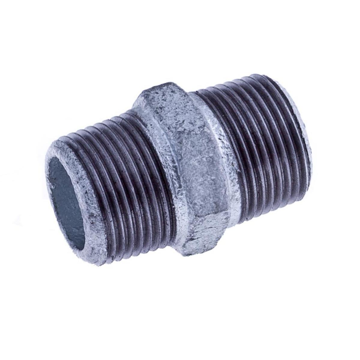 Sexkantnippel, aducerad, varmförzinkad, utvändig gänga. Int nr 280.