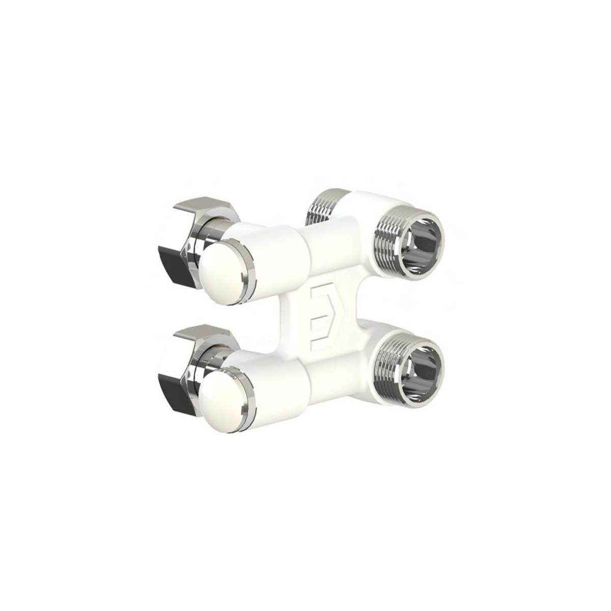 Rak4 fördelare för rördragning bakom radiator för typ TP11 och TP21. Vitlackad med avstängning.