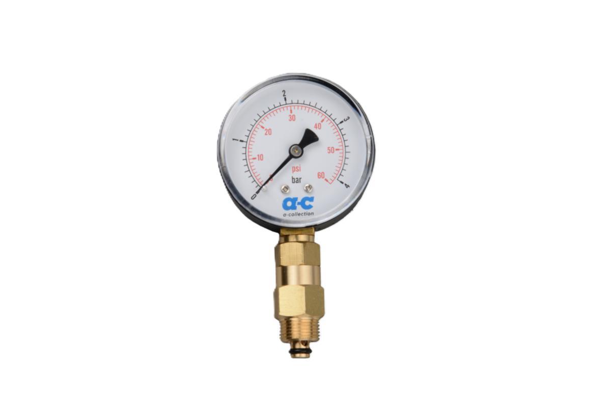 Tryckmätare 0-6bar, 63mm hus, komplett med backventilskoppling