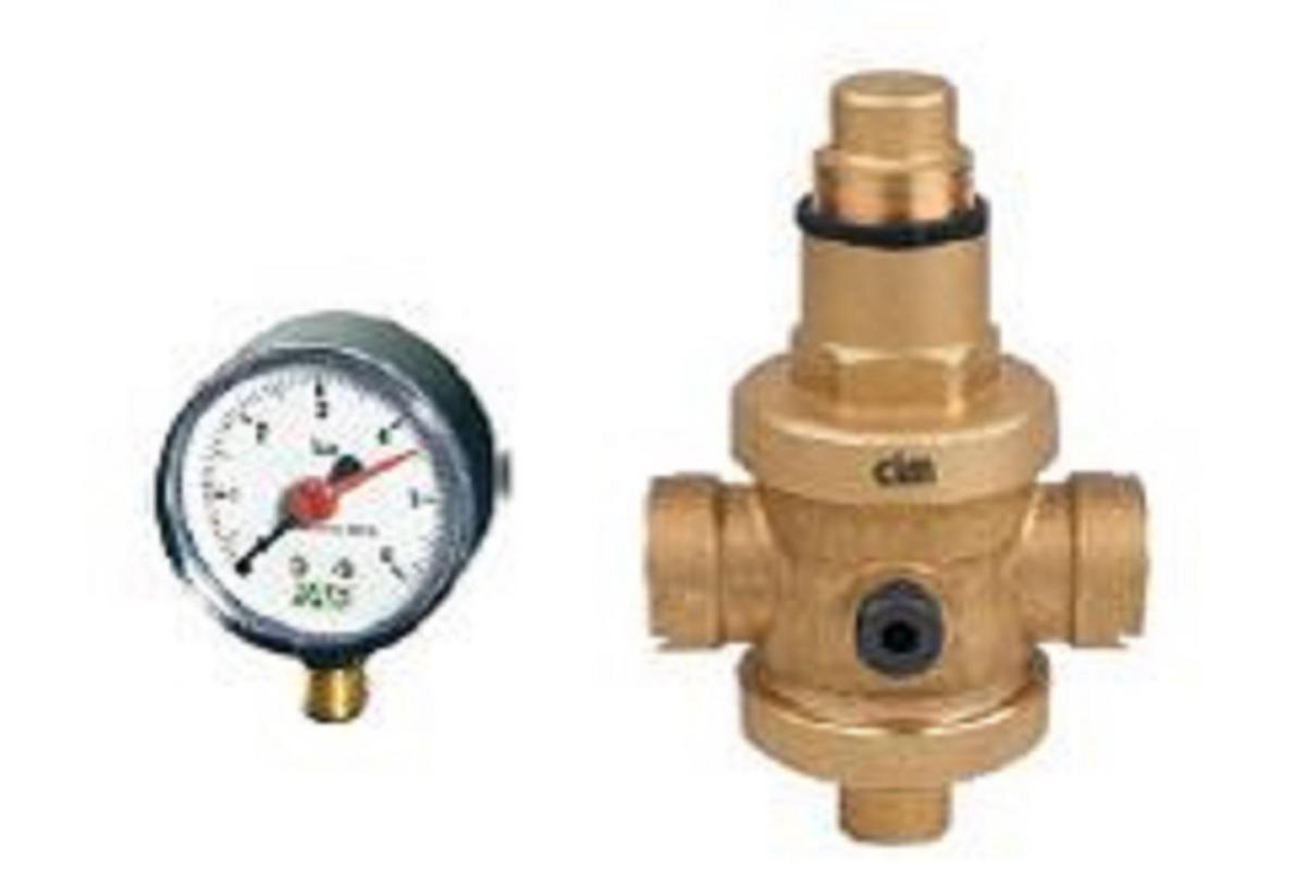 Reduceringsventil med manometer, inv gg, CR Mässing, justerbar 0,5 - 6 bar,