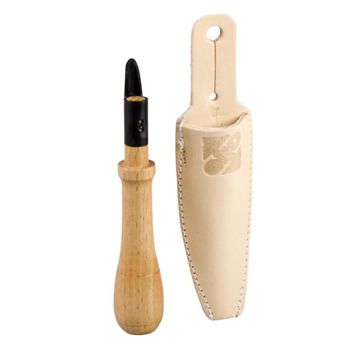 Doskniv med läderhölster, extra lång egg för håltagning i flexibla studsar