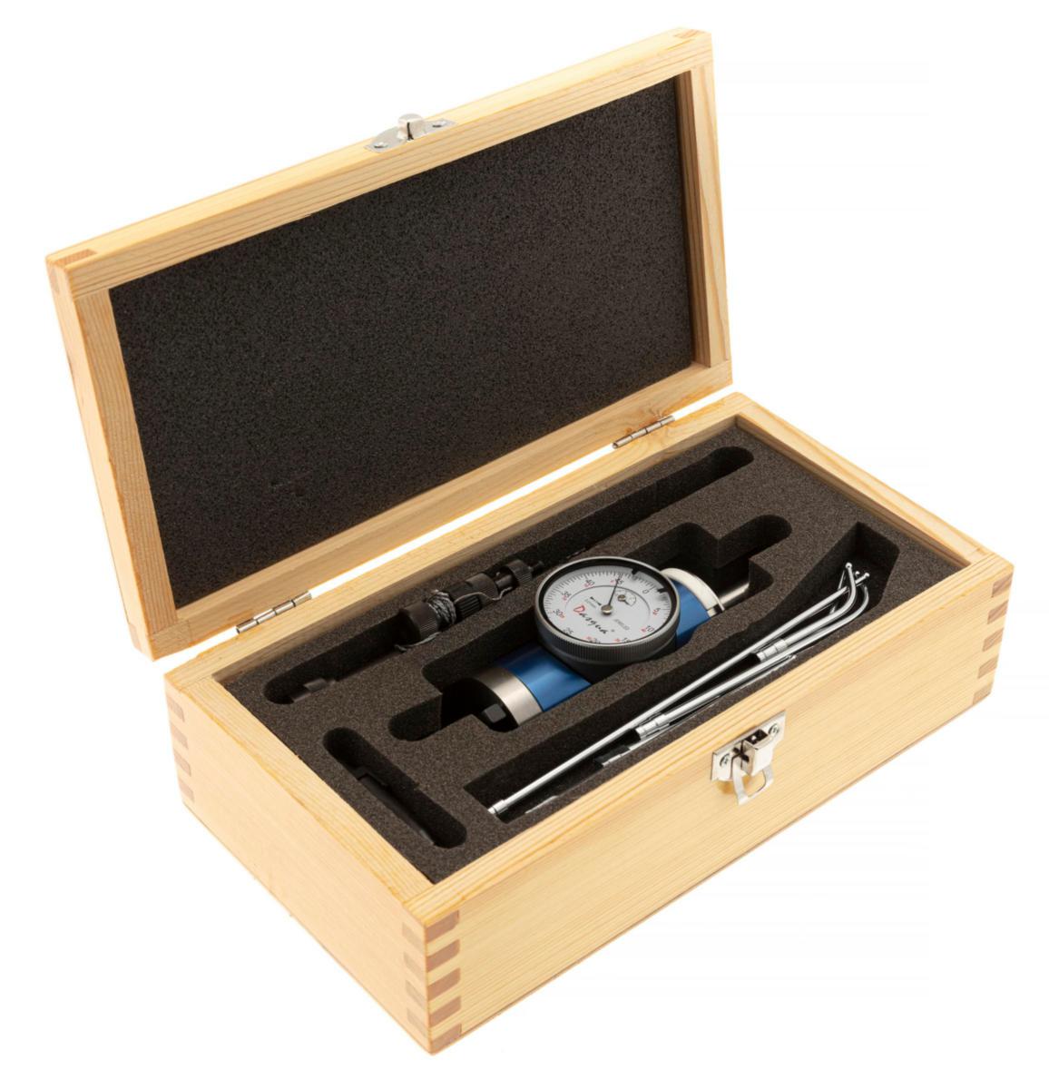 Centreringsindikator för in och utvändig, vertikal och horisontell centrering. Robust metallhus gör den lämplig för verkstadsbruk. Infästnings-skaft: Ø10x20 mm, indikatorlängd med 45 mm rak mätspets: 180 mm, invändig diameter: 4-300 mm, utvändig diameter: 0-300 mm, raka mätspetsar: 45, 100 och 154 mm, böjda mätspetsar: 46, 100 och 154 mm samt centerpunktsspets: 52,5 mm. Mätområde: 0-3 mm. Avläsning: 0,01 mm