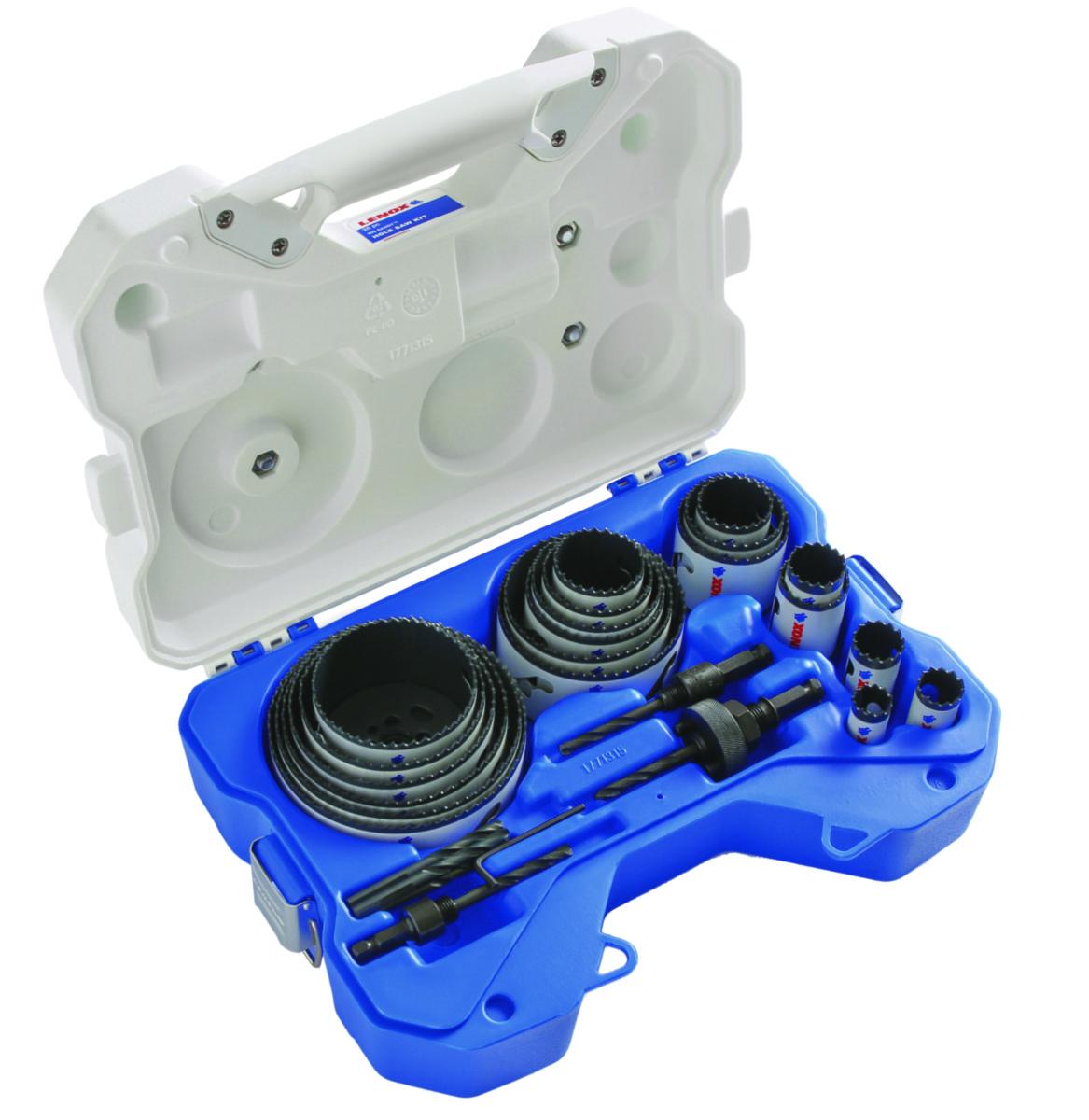 Montörsanpassad 26 delars hålsågsats typ G i låda med hållare och extra pilotborr, för olika yrkeskategorier och installationer. Hålsågsdimensioner i satsen: 19, 22, 25, 29, 35, 38, 44, 51, 54, 57, 64, 68, 76, 83, 86, 92, 95, 105, 114, 121 mm, hållare 1L, 2L, 5L och 3 st pilotborr.