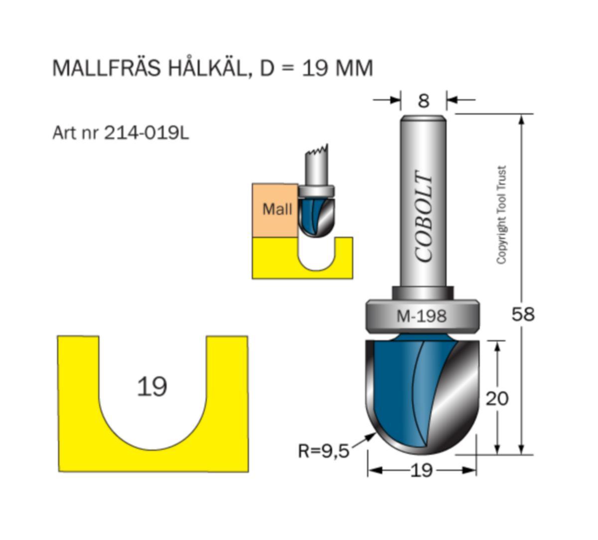 - Diameter fräs: 19 mm