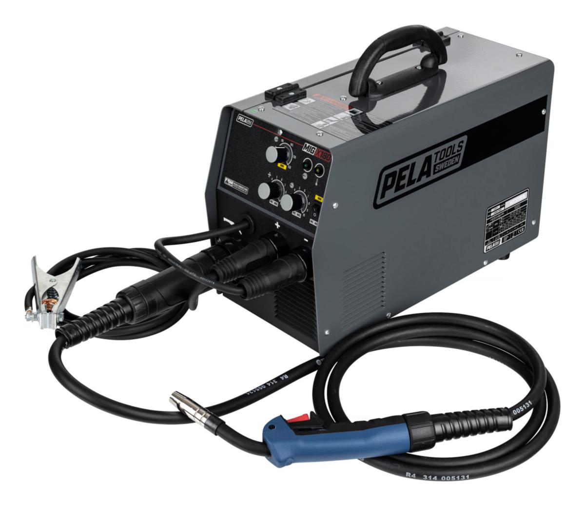 Liten portabel migsvets med IGBT inverterteknik, kompakt design och låg vikt. Går att svetsa i stål och rostfritt stål med 0,6, 0,8 eller 1,0 mm solidtråd tråd, i max 5 kg spolar. Komplett med svetspistol 3 m och återledare med jordklämma. Går även att konvertera för att svetsa med flussfylld tråd (som inte kräver skyddsgas).