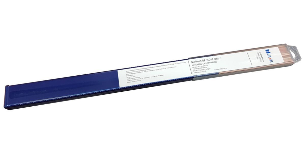 Silverfosforkopparlod med 2% Silver som används främst för koppar-rördetaljer och kopparplåt. Silverfosforkopparlod Meltolit 2P är för hårdlödning i koppar, mässing och i viss mån stål. Produkten innehåller fosfor vilket bryter "oxiden" på grundmaterialet vid sammanfogning av kopparrör, kopparanslutningar och VVS/Kyl – detaljer! Vid lödning av mässingsdetaljer behövs separat flussmedel typ Meltolit 770. (VVS Godkänt)