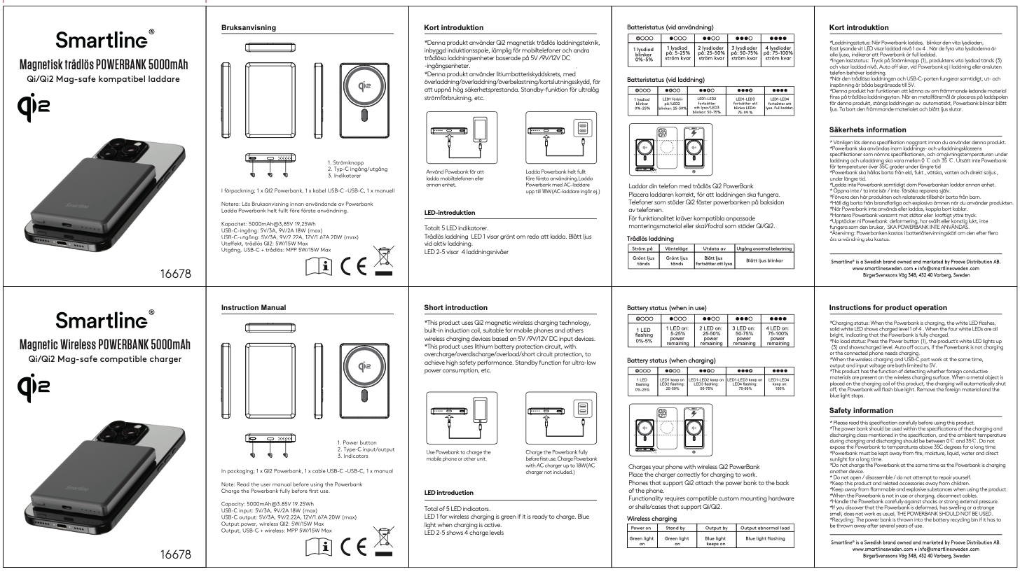 Powerbank, Qi2 + USB-C, magnetisk, 5000 mAh