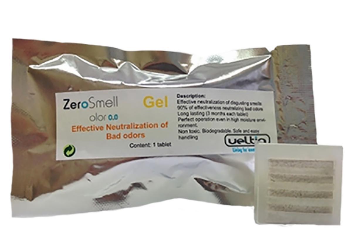 Zerosmell är en gel som hjälper till att eliminera lukt, förbättrar luftens kvalitet och avger en mjuk behaglig doft. Zerosmell ska bytas en gång per kvartal, dvs för en årsförbrukning behövs 4 paket.