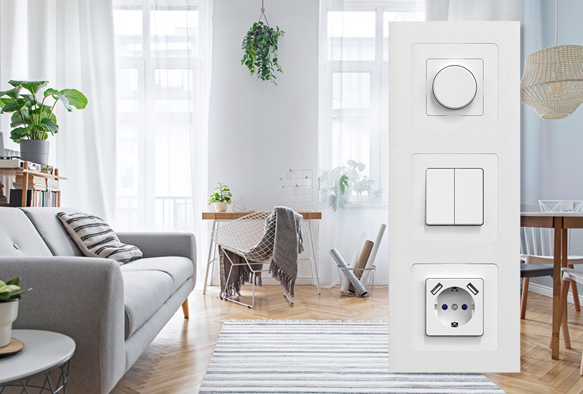 Produkternas enhetliga utseende i kombination med tillbehör som täckramar och förhöjningsramar skapar en snygg helhet vid installationer i hemmet.
